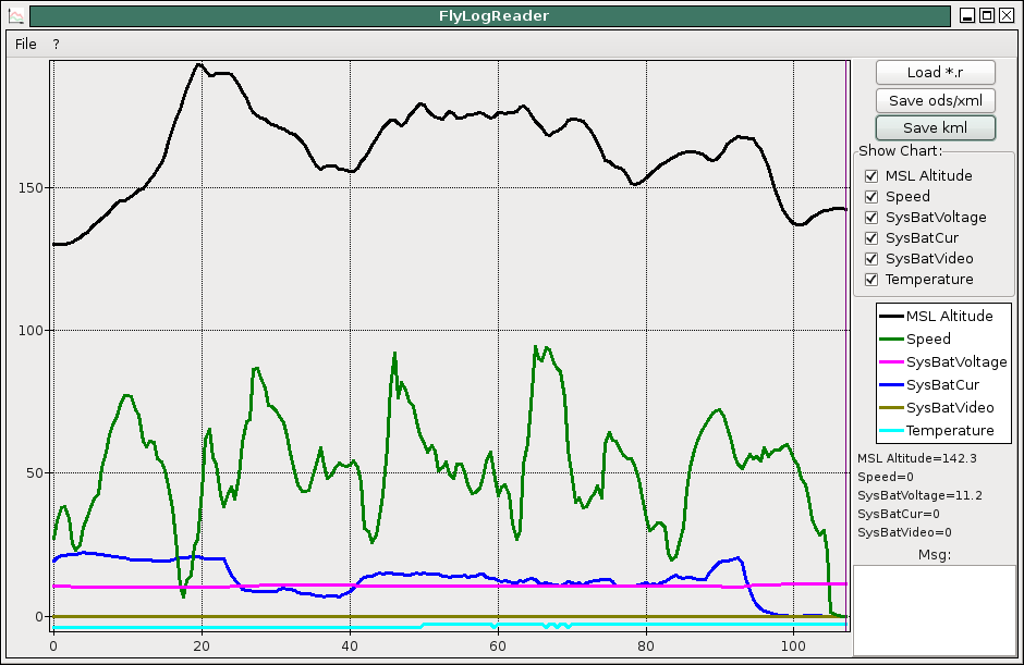 FlyLogReader reads *.r files (AEO APACHE OSD / Hobbyking OSD system), draws charts and save data to ODS/excel xml spreadsheet format. Saves flight path to kml for google maps.